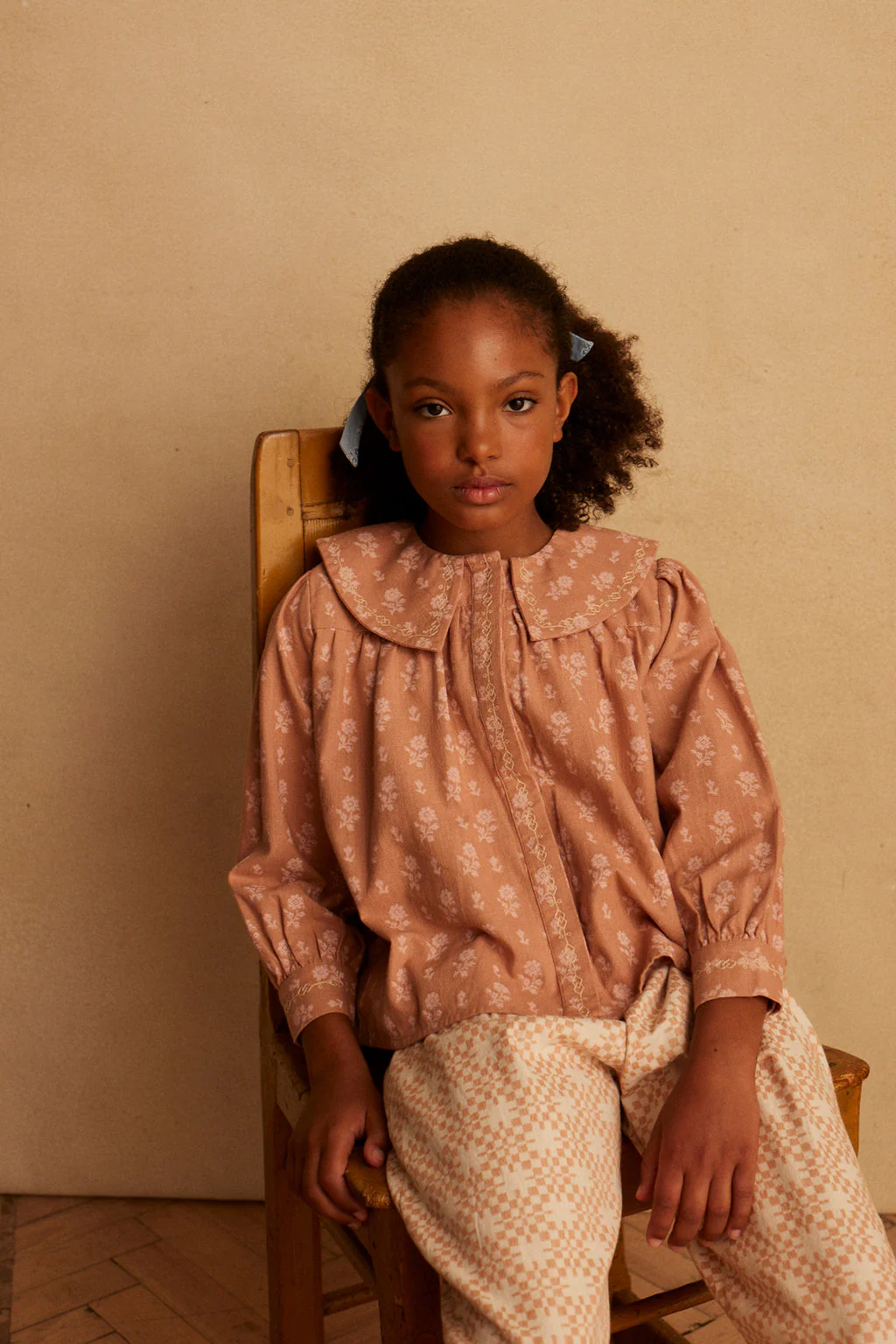 Apolina's beloved Molly trouser returns in their special Apolina jacquard, cut from premium cloth and woven to their design. Featuring hand crochet finish at hem. A simple pull on trouser with a high waist, relaxed fit straight leg and cute, slightly cropped length, Molly is perfect for layering with blouses, jersey, or under pinafores.