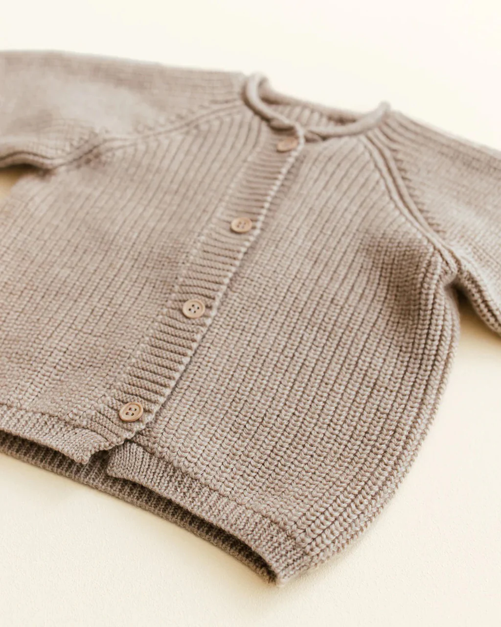 This seamless cardigan is knitted in one piece, offering exceptional comfort and a sensory-friendly experience for babies. The wide, elastic neckline features a subtle elastic thread knitted into the collar for added stretch and ease. Made with a fishermanās rib, this cardigan is incredibly soft and finished with charming wooden buttons.