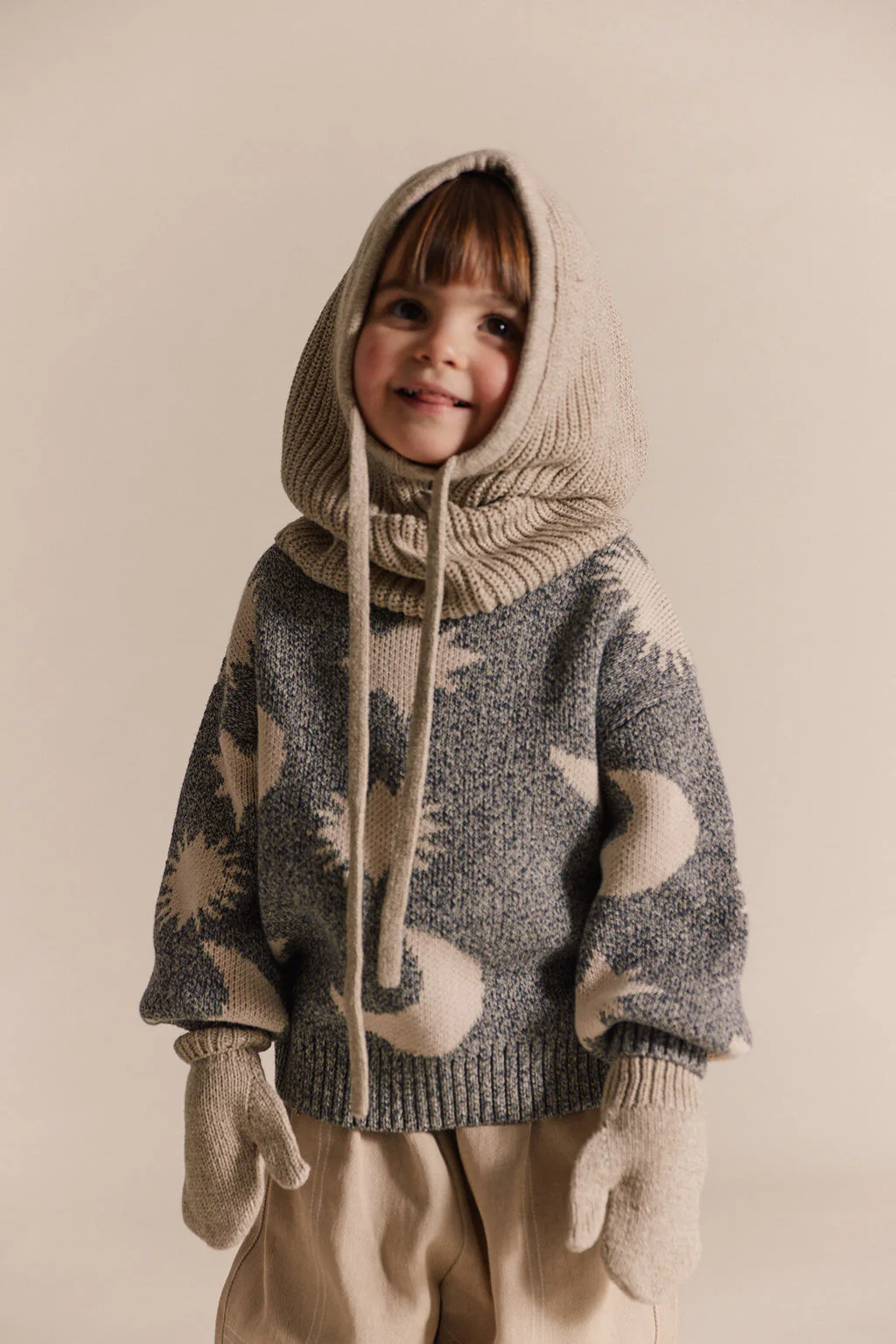 Featuring an iconic celestial pattern, and the slouchy fit, this soft knitted jumper is the perfect wardrobe staple; it layers over any outfit to offer an effortlessly stylish look (perfect for parents who don’t always have time for styling), transitions seamlessly from a breezy summer evening to a cosy winter day, and has lots of room to grow into, so your child will love it for a long time. Versatility is its powerhouse.